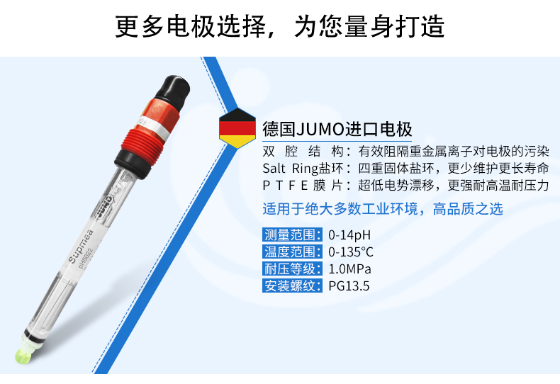 聯(lián)測(cè)新款pH塑殼電極SIN-pH5019,采用PON外殼材質(zhì),耐磨程度堪比鋼材,長(zhǎng)款接觸探頭,使用壽命更久,廣泛應(yīng)用于廢水處理和包括采礦冶煉、造紙、紙漿、紡織品、石油化工、半導(dǎo)體電子工業(yè)流程、生物技術(shù)下游工程等領(lǐng)域,能耐80攝氏度的高溫,并能耐強(qiáng)酸強(qiáng)堿侵蝕。