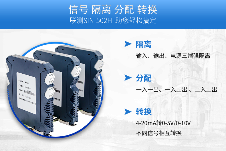 信號(hào)隔離器是一種信號(hào)隔離裝置,將輸入單路或雙路電流或電壓信號(hào),變送輸出隔離的單路或雙路線性的電流或電壓信號(hào),并提高輸入、輸出、電源之間的電氣隔離性能。