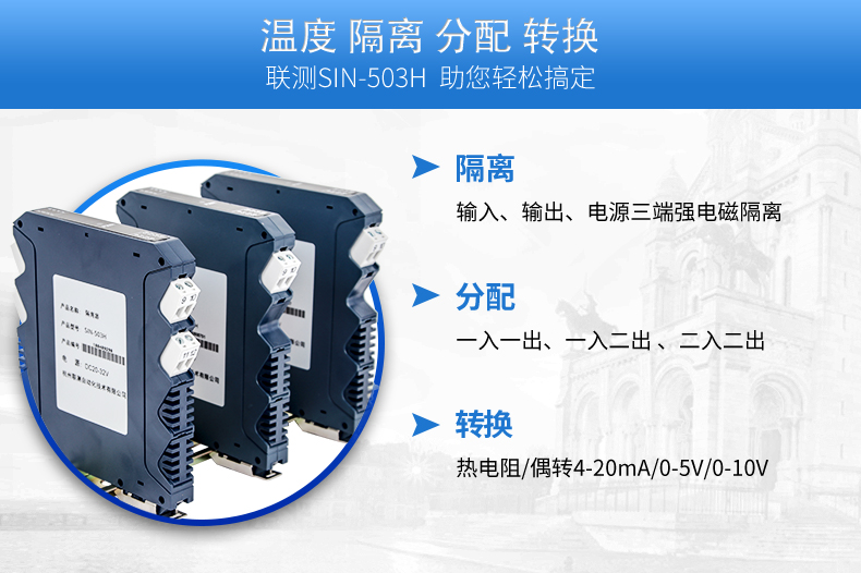 將PT100等熱電阻跟熱電偶信號轉(zhuǎn)換成各種電流、電壓等標(biāo)準(zhǔn)模擬量信號,可以與PC機(jī)、PLC、DCS等實(shí)現(xiàn)工控監(jiān)測連接。抗干擾能力強(qiáng),遠(yuǎn)傳不受其他設(shè)備影響。輸入、輸出選擇范圍寬,準(zhǔn)確度高。電源可選擇,導(dǎo)軌安裝便于檢測與安裝。廣泛應(yīng)用于各種對溫度集中測量的監(jiān)控系統(tǒng)中。