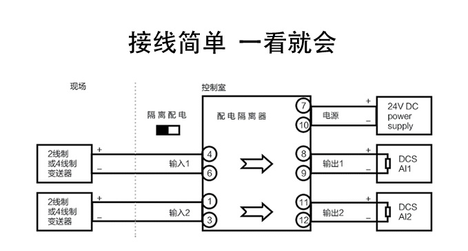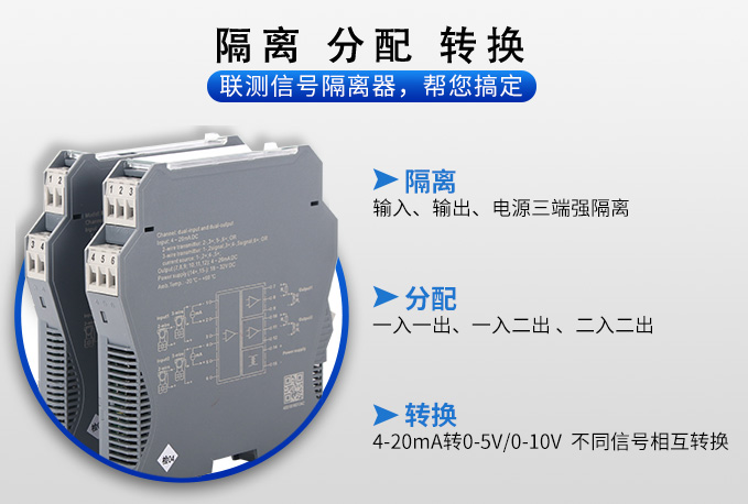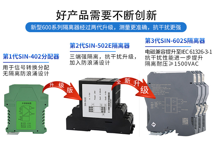 新款隔離器可向變送器提供隔離的工作電源,同時檢測回路中的電流,經(jīng)隔離變送輸出電流或電壓信號。 輸入端、輸出端及電源端三端隔離,具有響應(yīng)快、功耗低、溫度特性好等優(yōu)點(diǎn)。