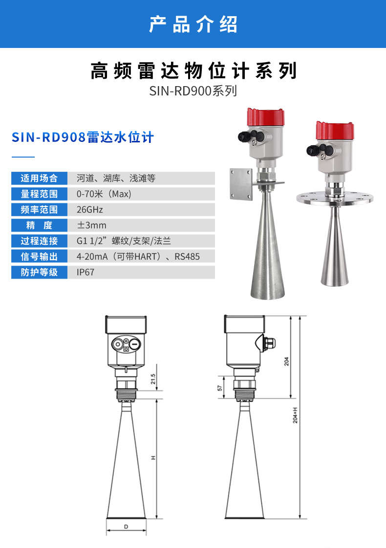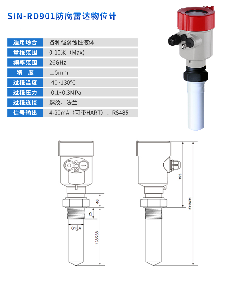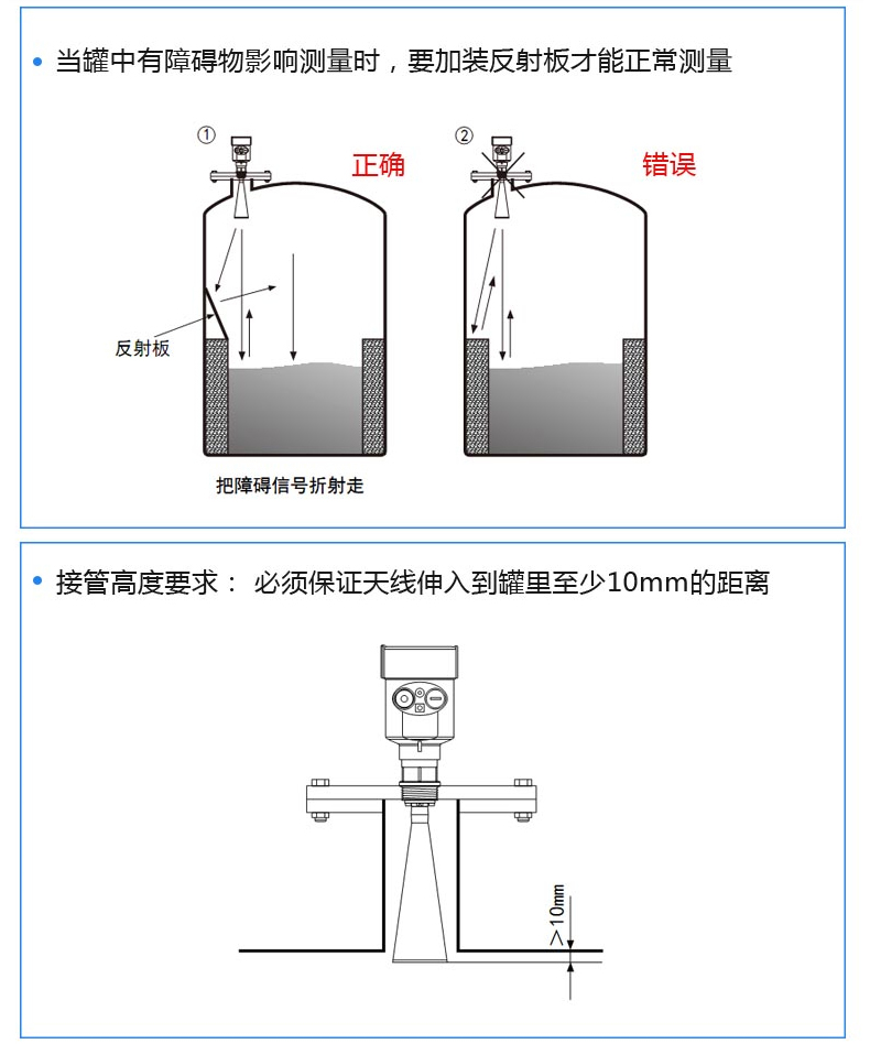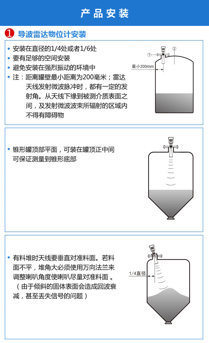 雷達(dá)液位計(jì)天線發(fā)射及窄的微波脈沖,這個(gè)脈沖以光速在空間傳播,遇到被測(cè)介質(zhì)表面,其部分能量被反射回來(lái),被同一天線接收。發(fā)射脈沖與接收脈沖的時(shí)間間隔與天線到被測(cè)介質(zhì)表面的距離成正比,多用于水位、料位與化工場(chǎng)合。