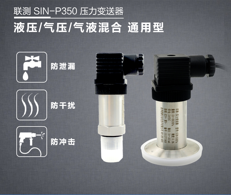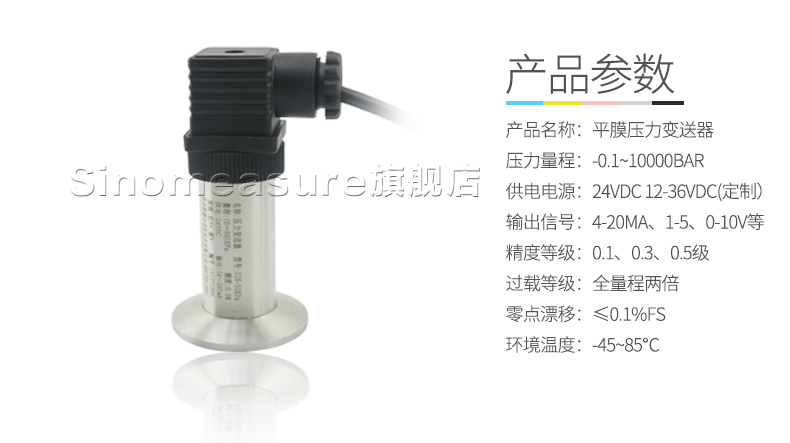 SIN-P350衛生平膜型壓力變送器,衛生平膜型液位變送器是測量端采用特殊堅固處理的齊平隔離膜片。結構緊湊、耐腐蝕,抗震動、抗微粒沖擊、寬范圍溫度補償。膜片采用316L不銹鋼材料,特別適用于醫療、食品行業有衛生要求的,粘稠流體壓力和液位測量,解決了結垢,堵塞,清潔衛生等問題。高精度的信號處理電路位于將傳感器輸出信號轉換為標準輸出信號,可直接與計算機、控制儀表、顯示儀表等相連。采用一體化全不銹鋼結構,經過多次不銹鋼焊接,實現了全固態設計,安裝方便。廣泛應用于食品、醫藥、衛生及釀酒工業等部門。