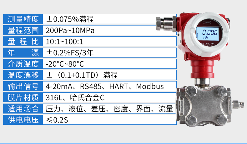 SIN-P3000單晶硅壓力變送器用于測量液體、氣體或蒸汽的液位、密度、壓力,然后將其轉變成4-20mAHART電流信號輸出,也可與HART375或BST Modem相互通信,通過他們進行參數設定、過程控制。與傳統壓力變送器的區別在于它使用的是納米單晶硅作為傳感器材料。