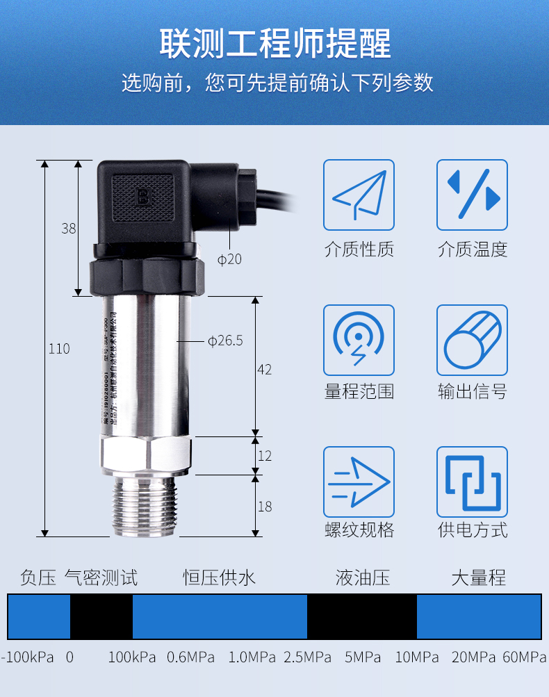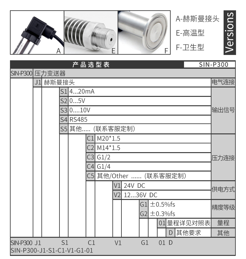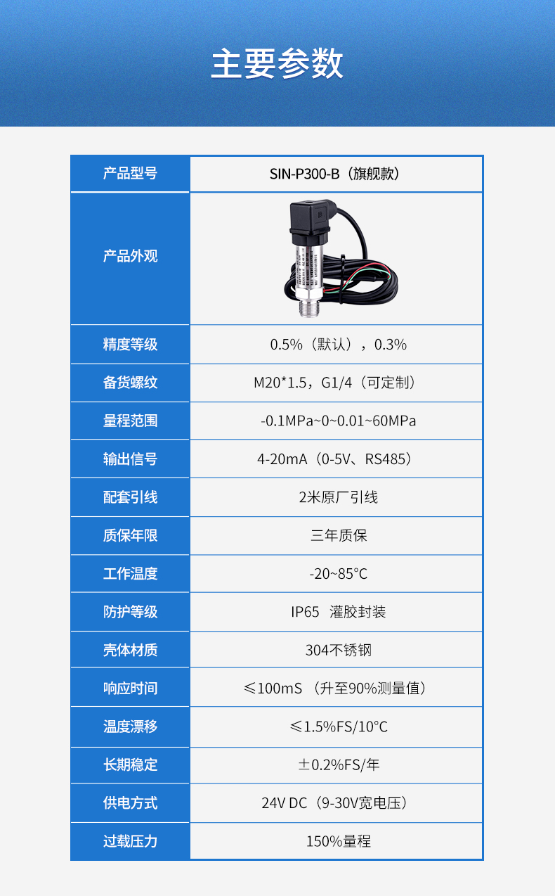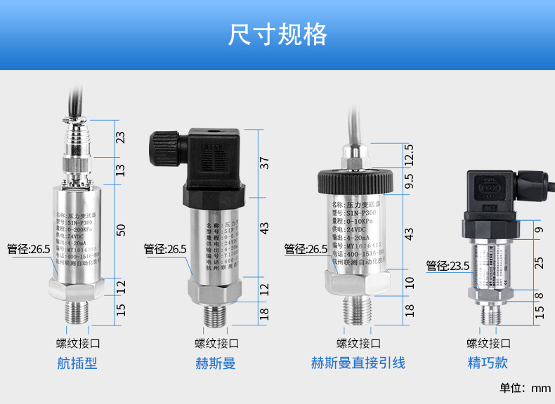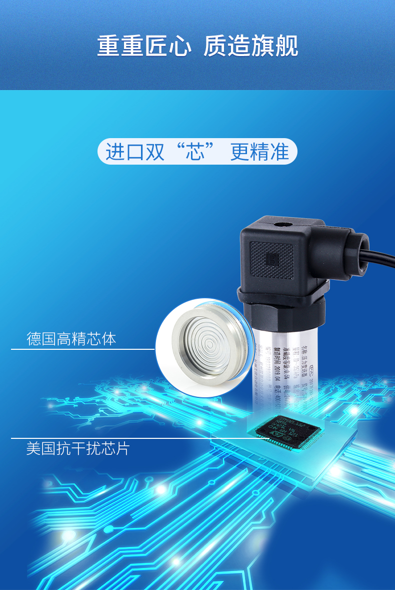 SIN-P300通用型壓力變送器德國進口硅芯片,精度高性能穩(wěn)定;SIN-P300型通用型壓力變送器采用擴散硅壓力芯體作為敏感元件,內(nèi)置處理電路將傳感器毫伏信號轉(zhuǎn)換成標(biāo)準(zhǔn)電壓﹑電流信號輸出,可直接與計算機、控制儀表﹑顯示儀表等相連。